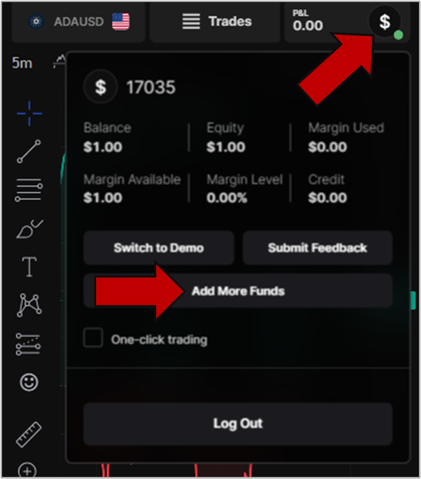 - Click on the “$” icon, and a menu will appear. Choose the “Add More Funds” option.