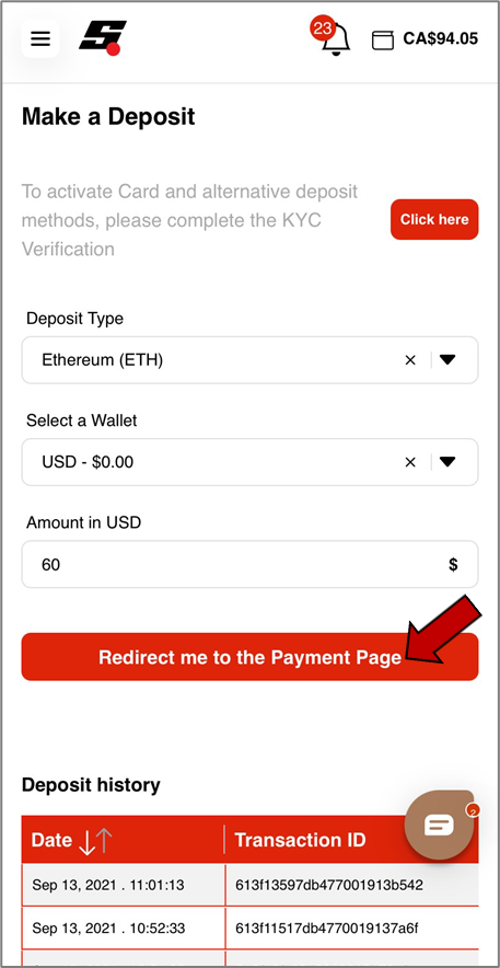 Get started by going to the Deposit Funds section.