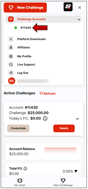 1. Click on the Challenge Accounts tab.