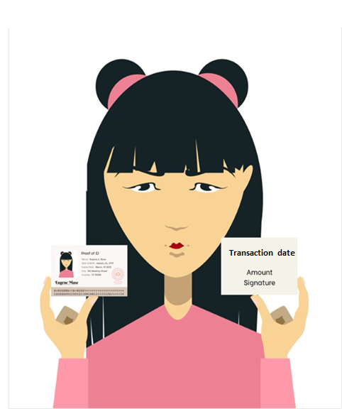 - You are holding a handwritten paper with the transaction date, the withdrawal amount and signature written on it.